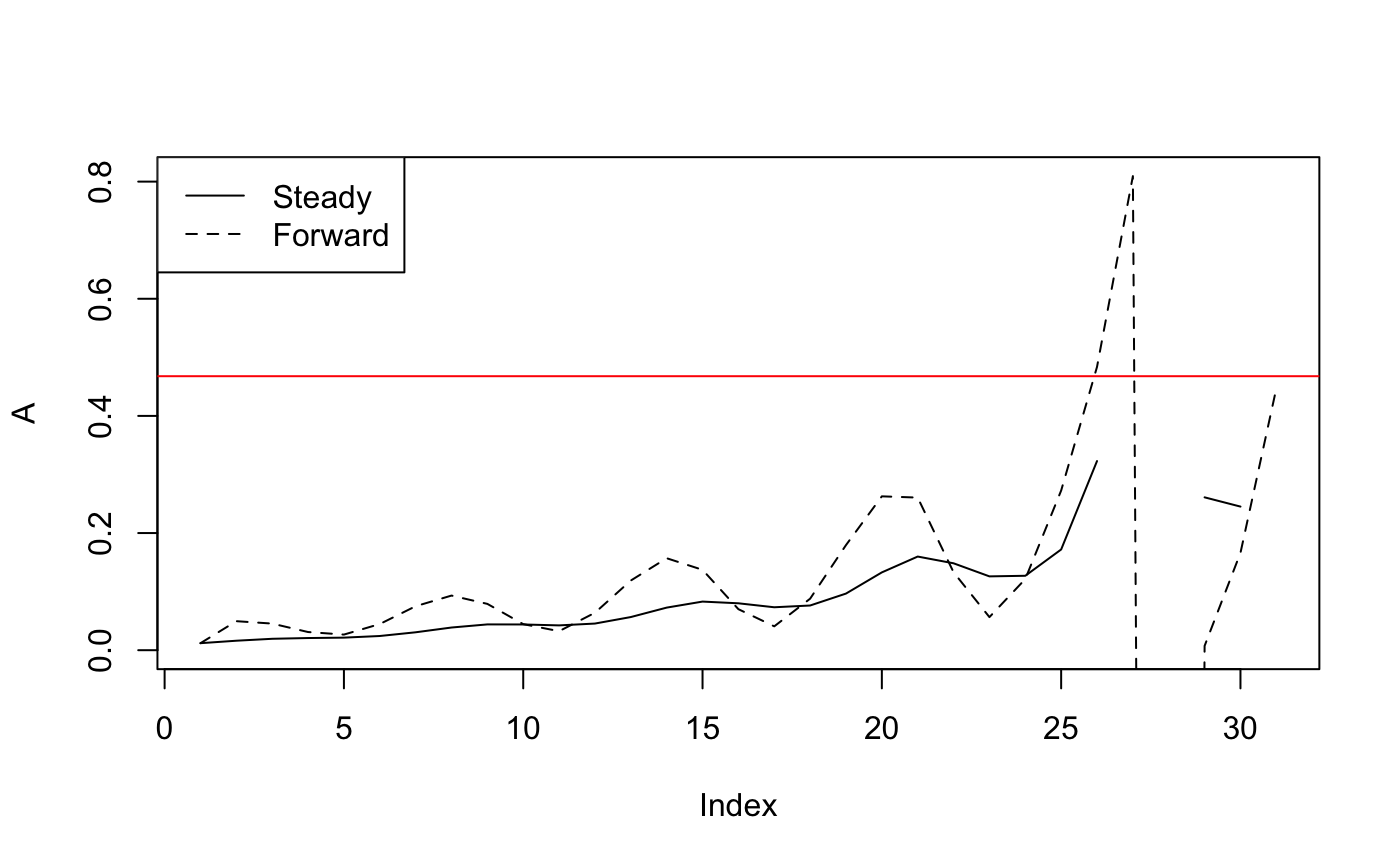 ylim = c(min(c(eqAR$A, forwardA)), max(c(eqAR$A, forwardA), na.rm = T)))